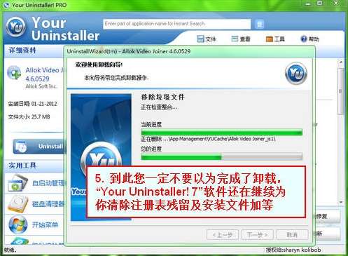 5、到此您一定不要以为完成了卸载,“Your Uninstaller!”软件还在继续为你清除注册表残留及安装文件加等;