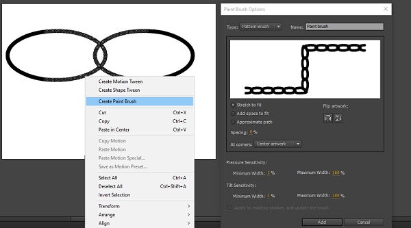 创建和管理矢量画笔:Animate介绍了使用Animate中绘制的形状创建和共享矢量画笔(艺术和图案画笔)的能力。在介绍此功能之前,您可以使用Adobe capture CC应用程序创建画笔,并从CC库中进行同步。此功能允许您从Animate CC中的矢量素材创建自定义画笔。