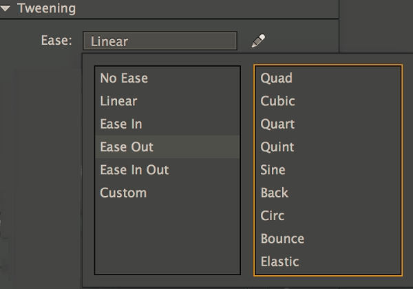 简化预设和定制方式:在这个版本中,一组标准的预设可用于经典和形状的tweens,为动画设计师提供灵活性。您可以从轻松预设列表中选择预设,并将相应的轻松应用于各个选定的属性。您还可以将自定义轻松应用于形状补间。
