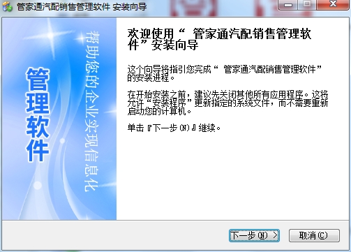 1、在PC下载网下载管家通汽配销售管理软件最新版压缩包,然后进行解压,解压后,双击exe程序,进入安装界面,然后点击下一步