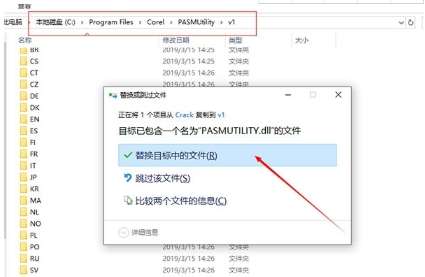 7、退出软件后,将破解补丁复制到“C:\Program Files\Corel\PASMUtility\v1”目录下替换