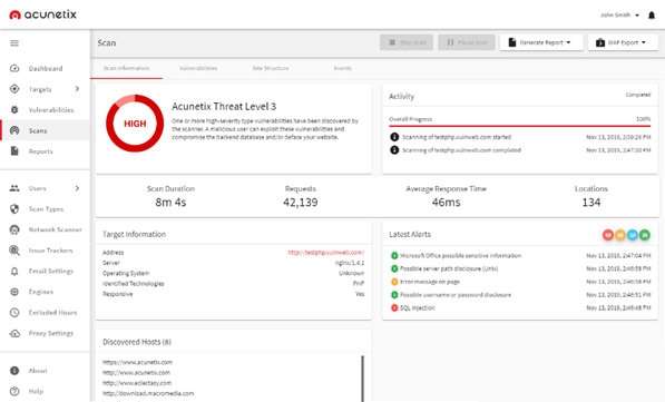 9、智能爬行程序检测 web 服务器类型和应用程序语言。10、Acunetix 检索并分析网站,包括 flash 内容、SOAP 和 AJAX 端口扫描 web 服务器并对在服务器上运行的网络服务执行安全检查。