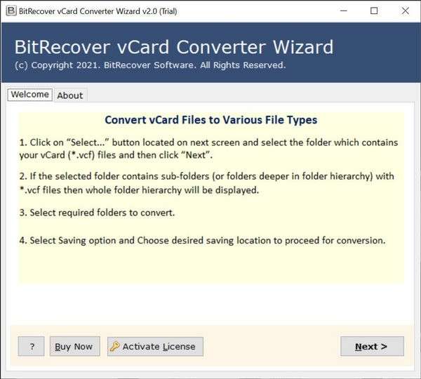 BitRecovervCardConverterWizardvCard文件转换器工具是一个非常好的vCard文件转换软件,可以转换vCard文件联系人及所有属性,您可以免费下载。