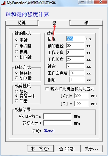 1、打开键的强度计算.exe显示计算界面,可以在这里计算新的内容