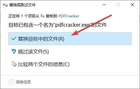 3、选择替换目标中的文件即可完成软件破解