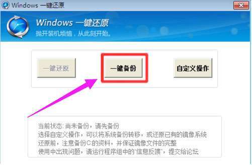 1、在本站下载并安装,完成后直接进入软件,点击“一键备份”就行了,软件会自动把系统备份在除C盘外可用空间最大的分区。如图下所示。