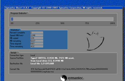 3、系统就开始备份了。备份完了,软件会再次自动重启,进入系统。如图下所示。