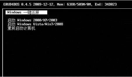 4、开机时会有两个菜单项让你选择,默认会进入系统。这个菜单会显示5秒的时间,在这个时间内,按键盘的上下方向键就能选择了,按“Enter键”就能自动还原系统。如图下所示。