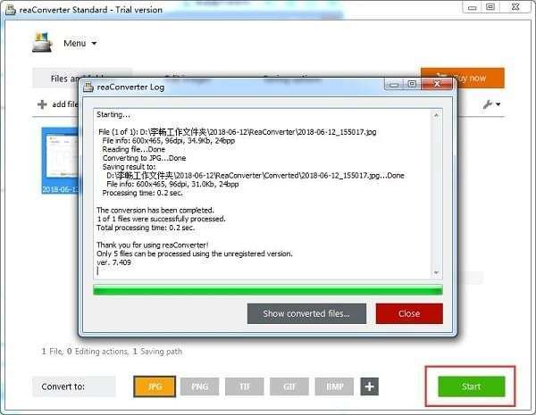 5、选择需要转换的图片,点击start图标;