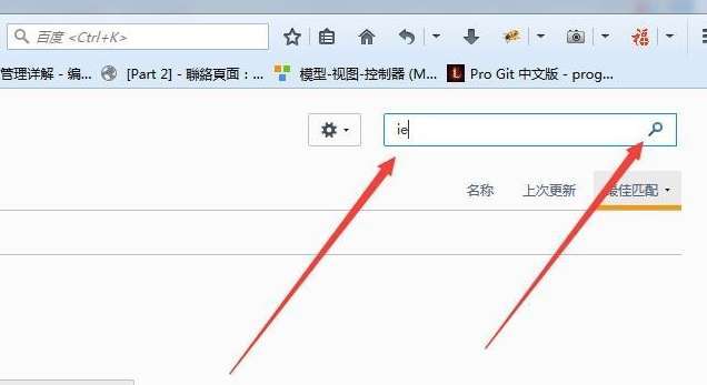 3、之后会打开“附加组件管理器”,我们需要搜索“IE”相关插件。