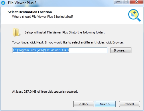 4、对安装的位置进行选择,默认位置“C:Program Files (x86)File Viewer Plus 3”,建议安装D盘,点击next;