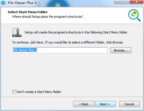 5、选择开始菜单文件夹,默认文件夹“File Viewer Plus 3”,点击next;
