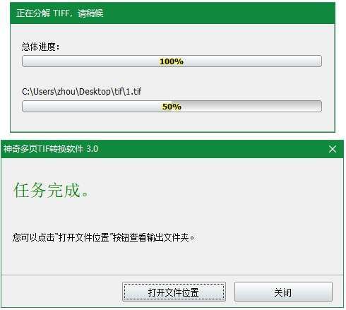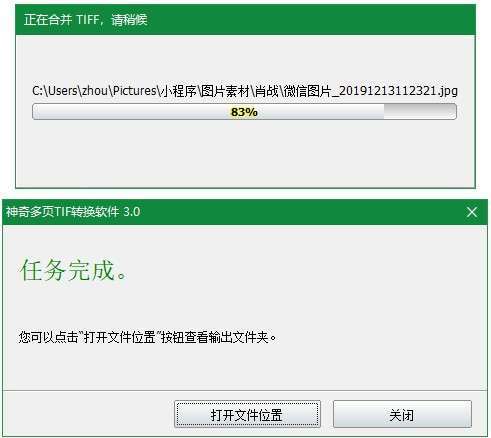合并完成后,点击“打开文件位置”即可打开文件保存文件夹位置,双击TIF文件即可查看。