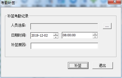 4、支持进行考勤的补签,需要对时间的设置、人员的选择、补签的原因等;