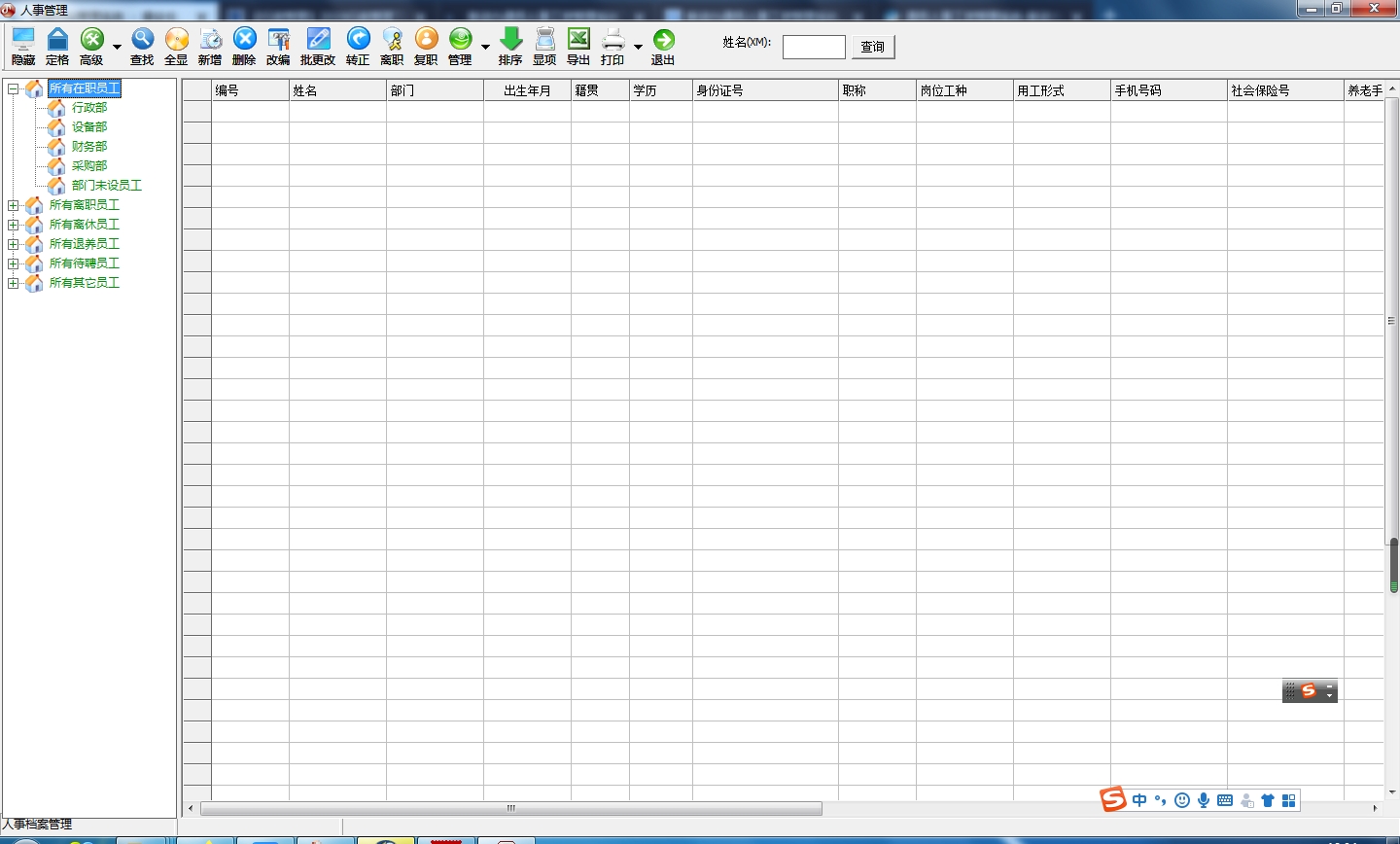 2、进入软件的主界面,人事管理的功能选择界面,如下图;