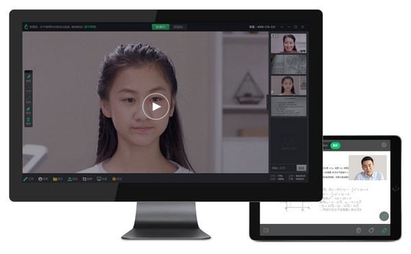 四路视频看、写、听、讲轻松自如,师生"面对面"学,高清习题手写演算,作业远程批改,老师"手把手"教。