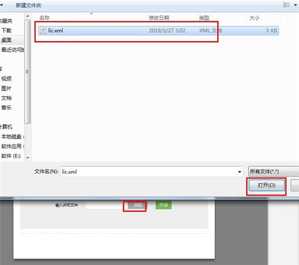 12、点击浏览打开激活补丁文件夹里的“lic.xml”文件