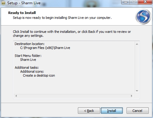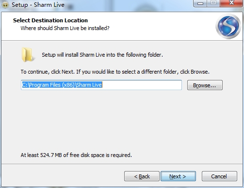 2、选择安装目录,默认为“C:Program Files (x86)Sharm Live”,可以点browse修改