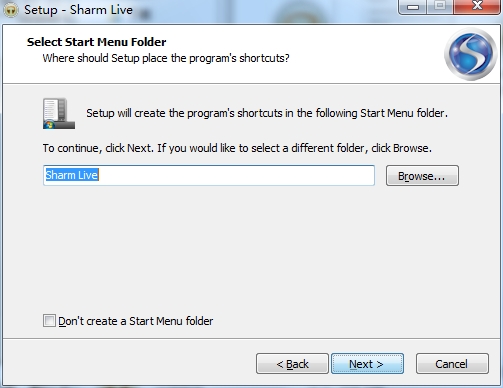 3、设置开始菜单文件夹名称,默认为“Sharm Live”