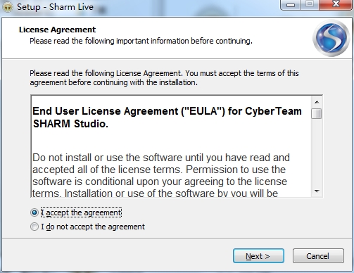 1、双击“Sharm_Live_2-7.exe”文件,弹出许可协议界面,查看许可协议内容,勾选i accept the agreement