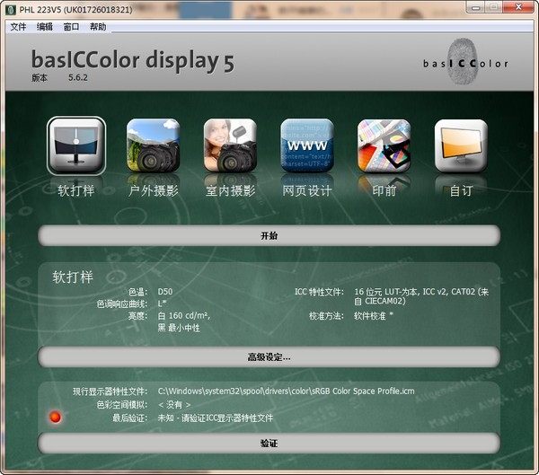 basiccolor display软件领先的专业级为显示器校准第五代在易用性和功能有了大幅的提升。用鼠标单击右从开始页,可以使用5个预定义的设置。basiccolor display 5软件可以方便用户对快速调整显示器的多种参数,并且提供了多种模式方便用户快速切换,包含软打样、户外摄影、室内摄影等,且支持自定义模式。