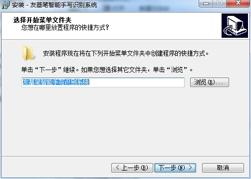 4、选择目标位置,默认的是C:Program Files (x86)友基笔智能手写识别系统,可以点浏览修改