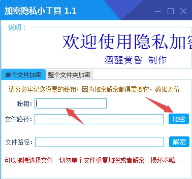 1、请务必记住您设置的秘钥,因为加密解密都需要它,数据无价