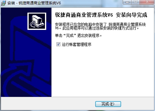 10、锐捷商通商业管理系统已经安装完成,点击完成;