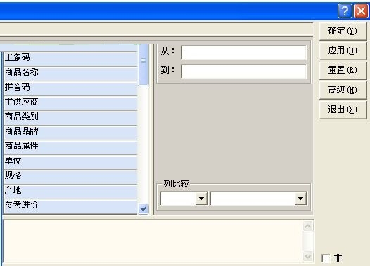 查询是数据库系统的一个最重要的操作,没有查询就得不到想要的数据,数据库系统也就失去了可用性。本系统的万能查询器是极富特色的,使用相当方便,真可使你为所欲为。按一下查询按钮,弹出万能查询器窗口,左边是查询条件名,根据不同的数据窗口会自动给出不同的查询条件名,右边是查询条件值的输入处,根据不同的查询条件名会自动给出不同的输入方式。