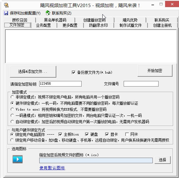 新飓风视频加密工具中文版是款非常安全可靠且功能强劲实用的视频文件加密软件,新飓风视频加密工具中文版采用专业性的设计理念,可以防翻录水印、创建注册机、创建播放密码、制作试播文件、授权召回等多项功能,新飓风视频加密工具还可以新飓风视频加密工具。