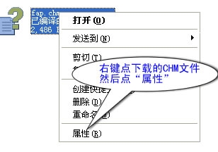 或者鼠标右键点击CHM文档在右键菜单中点“属性”,然后在弹出的对话框中选择"解除锁定"。