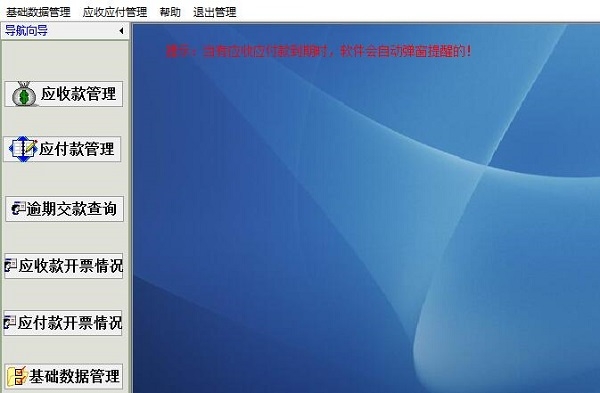 易达应收应付管理软件最新版是一款商业应收应付管理软件。易达应收应付管理软件最新版包含了应收款管理、应付款管理、逾期交款查询、应收款开票情况、应付款开票情况、基础数据管理、欠款单号管理、应归还日期管理以及联系人管理。易达应收应付管理软件可以随时备份系统中的数据。