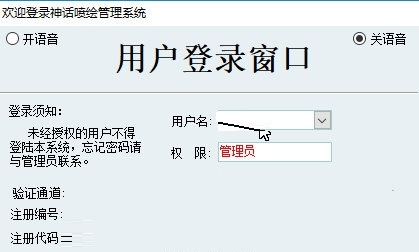 第二步、双击 神话喷绘管理系,开始打开喷绘软件(用户名密码:名胜为 管理员 密码333333 李鹏 普通员工密码 222222,普通员工只能看到录入两个窗体,管理员可以看到全部窗体 )