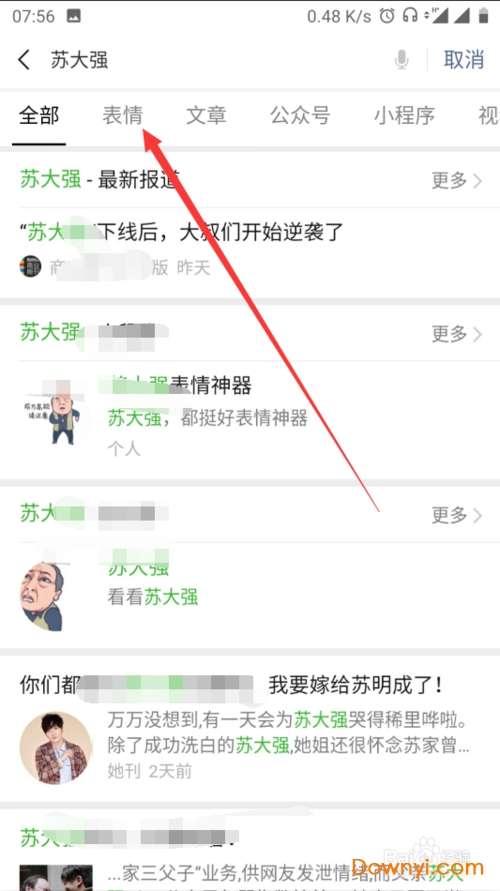 在输入框中我们输入我们要搜索的微信表情包,这里输入苏大强
