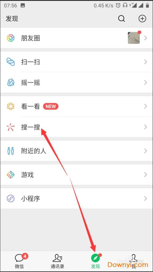 首先打开我们的微信,然后在微信页面找到发现,在发现中我们找到并点击搜一搜