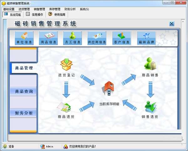 1、基础信息(单位信息、商品信息、员工信息、供应商信息、客户信息、磁砖品牌);
