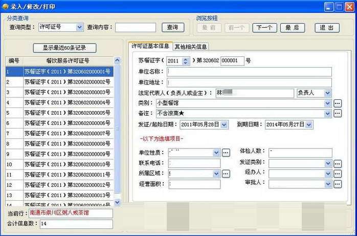 餐饮服务许可证打印与管理系统软件特色