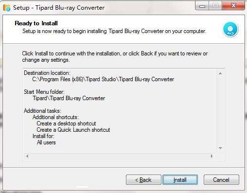 6、确认Tipard Blu-ray Converter安装信息,点击install开始安装
