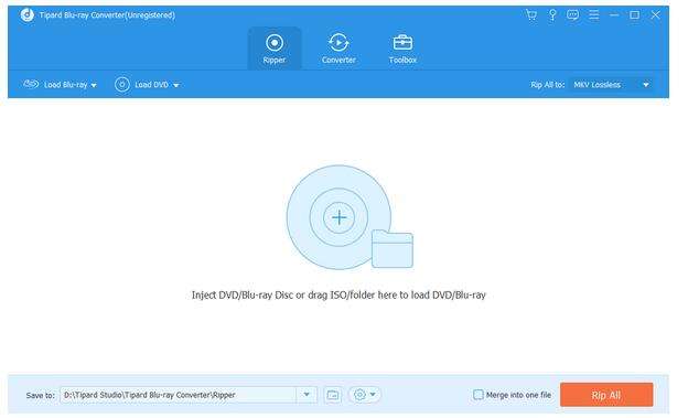 免费下载Tipard Blu-ray Converter到您的电脑,安装和运行它。然后单击“加载光盘”下拉菜单并选择“加载BD光盘”或“加载BD文件夹”以加载自制的蓝光电影。