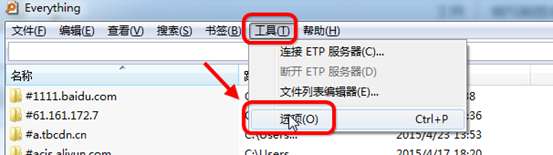 1、打开everything软件的主界面,点击上方状态栏中的“工具”,在下拉中选择“选项”。