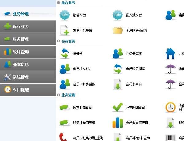 7) 一卡多用:会员卡功能可自由组合;储值卡、次数卡也可积分、打折和设置有效期。