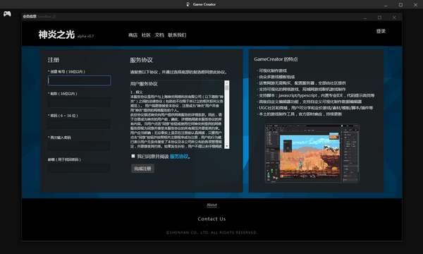 一、下载打开Game Creator最新版,首先注册一个账号,账号注册后可以免费试用。