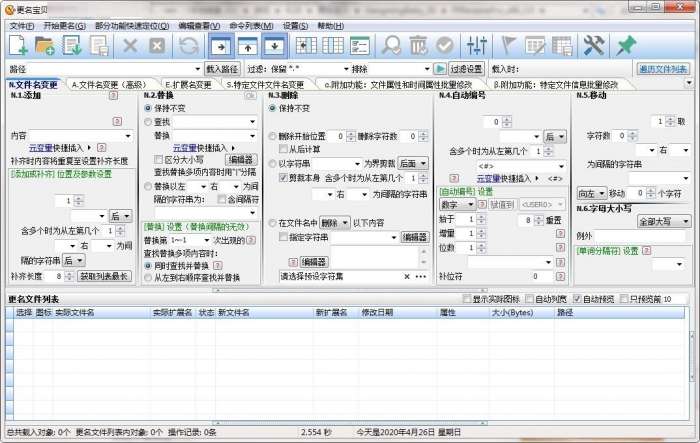 - 支持全程记录每一更名命令操作,可保存和载入操作记录作为更名批处理