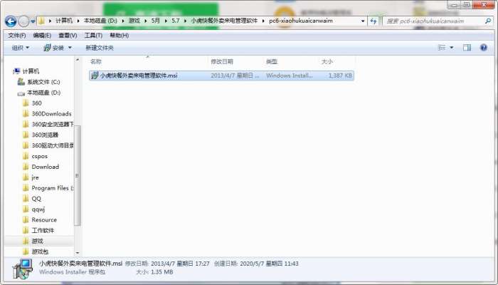 2.解压小虎快餐外卖来电管理软件压缩包,选中程序