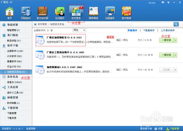 第二步:在G+里的软件管家里找到加密锁医生,安装并修复一下。