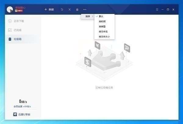 毫无疑问,迅雷U享版界面是笔者见过最简洁的迅雷客户端了,仅保留最基本的下载、暂停、删除、垃圾箱几个功能,摒除了迅雷9的广告、直播等模块,简直不能再精简!