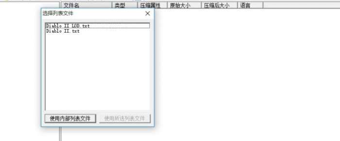 4、您可以选择需要操作的列表,选择压缩的数据文件,可以使用内部列表文件,可以使用所选文件