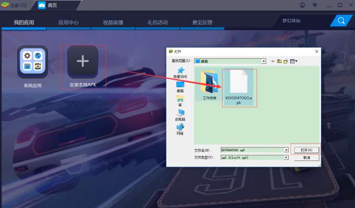 2、安装成功以后,打开模拟器,点击安装本地apk。