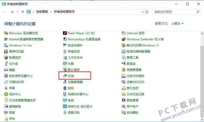 1、点击电脑左下角的开始选项,在弹出的选项中点击控制面板,打开Windows系统的控制面板后,点击打开其中的“区域”选项。