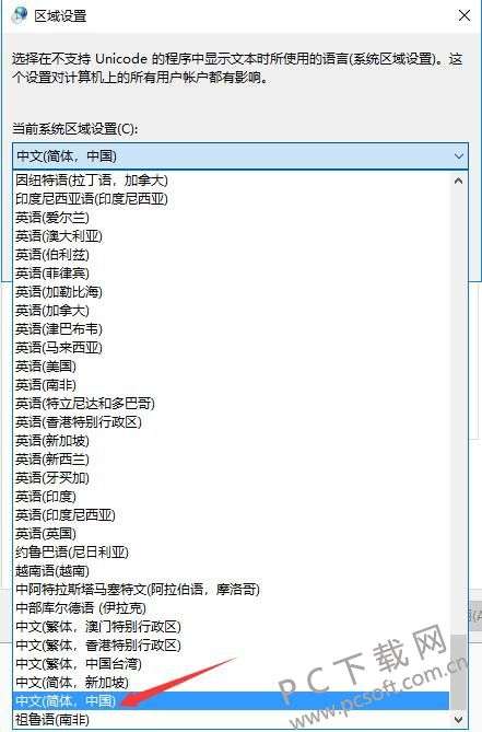 3、在区域设置窗口中,选择“中文(简体,中国)”选项,并确认修改就可以了。